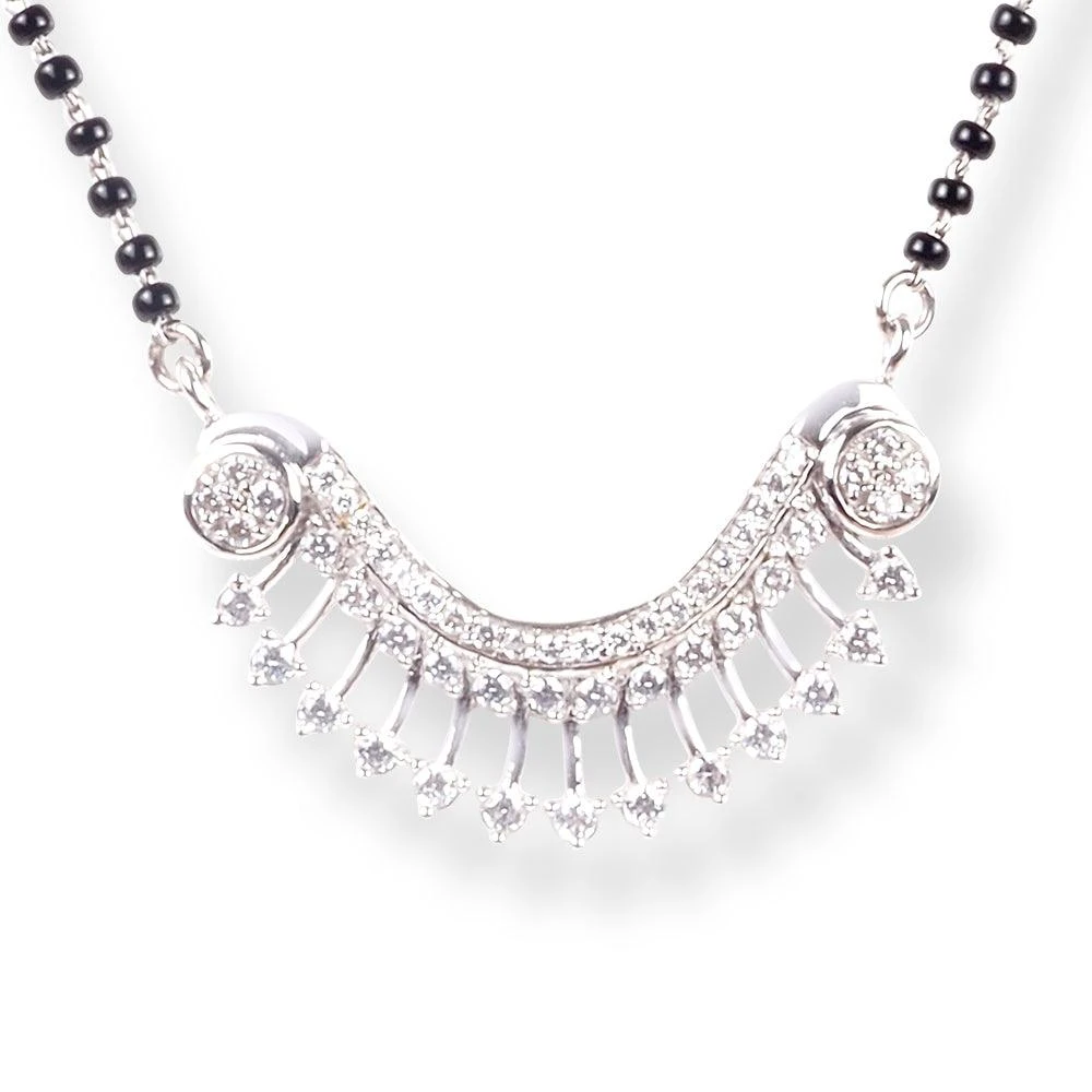 18ct White Gold Mangal Sutra With Swarovski Zirconia Stones & Hook Clasp MS-1678