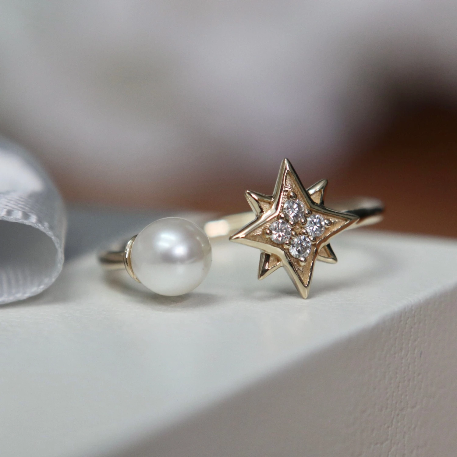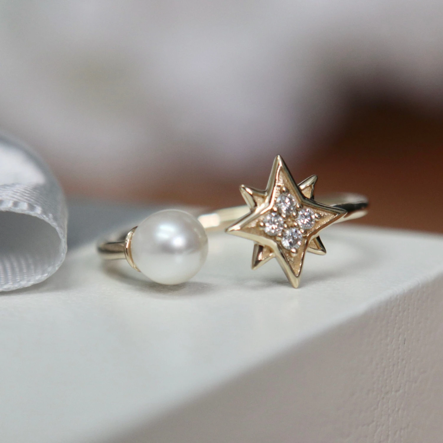 Illuminez votre look avec cette ravissante la bague Étoile du nord en or 10K, ornée d’une perle de culture d’eau douce blanche et de moissanites. La forme ouverte procure un confort supplémentaire