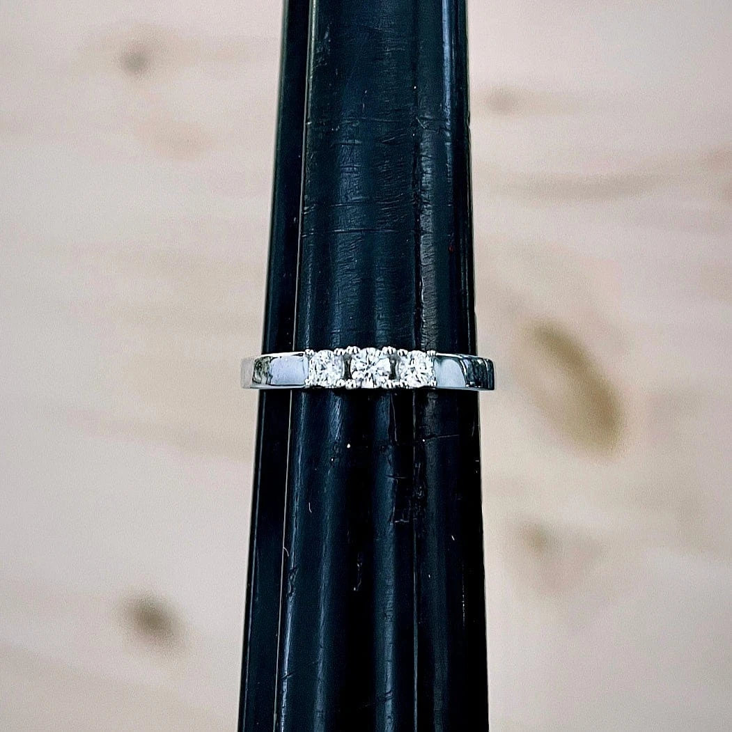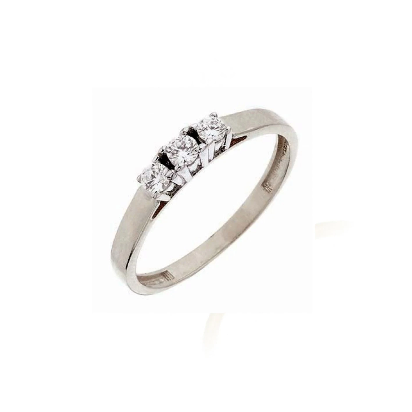 Bague de fiançailles traditionnelle, sertie de 3 zircons cubiques, en or jaune 10K ou or jaune et blanc 10K.
