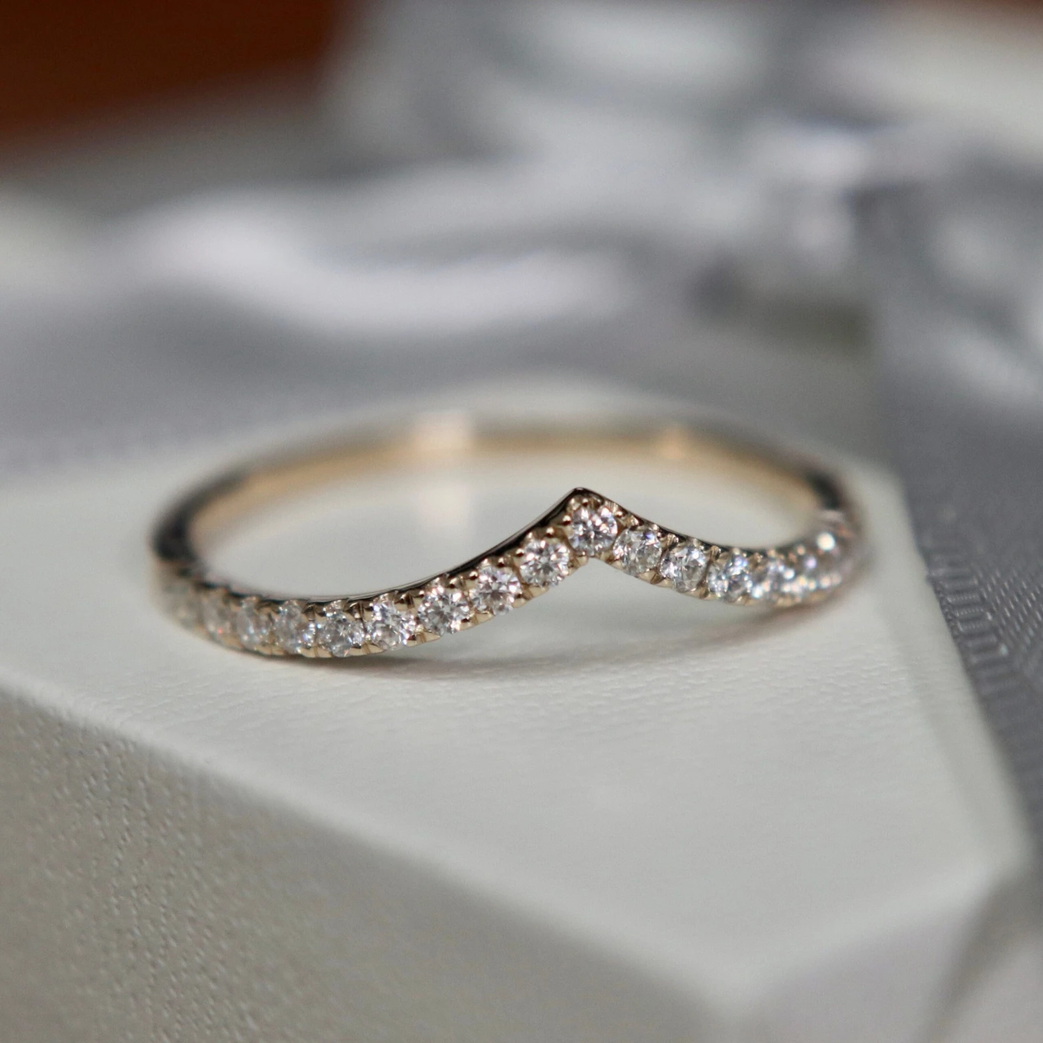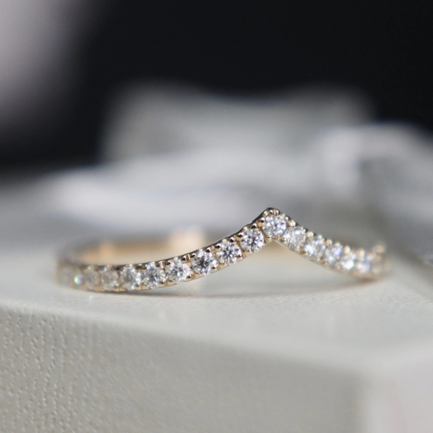 Conçue pour ajouter une touche d’éclat à n’importe quel look, cette bague en forme de v en or jaune 10K met en valeur 21 scintillantes moissanites. Vous vous sentirez comme une reine avec cette bague!