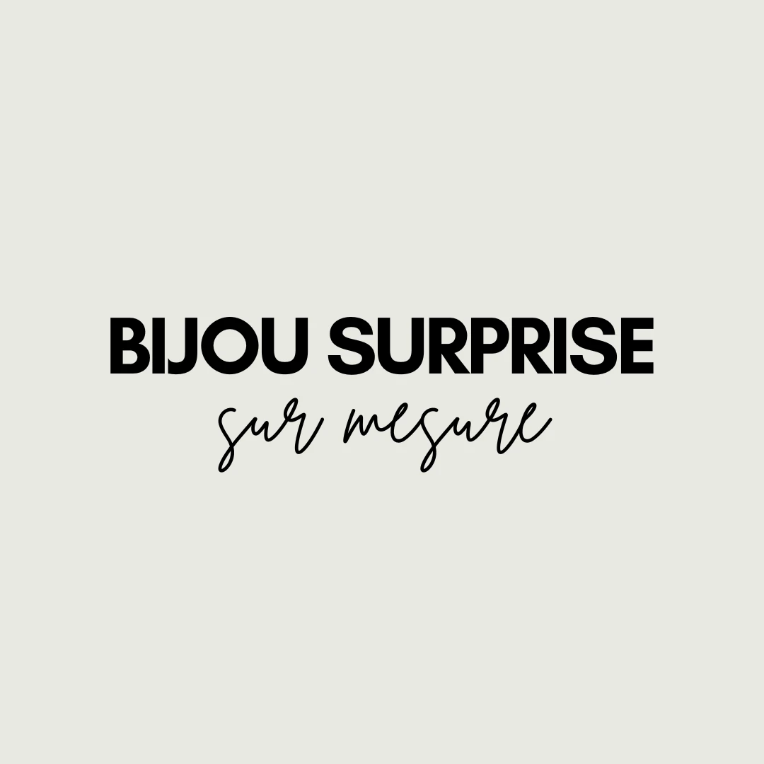 Vous rêvez d’un bijou unique et inattendu ? Avec notre bijou surprise sur mesure, laissez notre équipe créer une pièce spécialement pour vous, sans que vous sachiez à l’avance ce que ce sera. Chaque bijou est conçu sur mesure, en or 10K, 14K ou 18K selon la création, rien que pour vous.