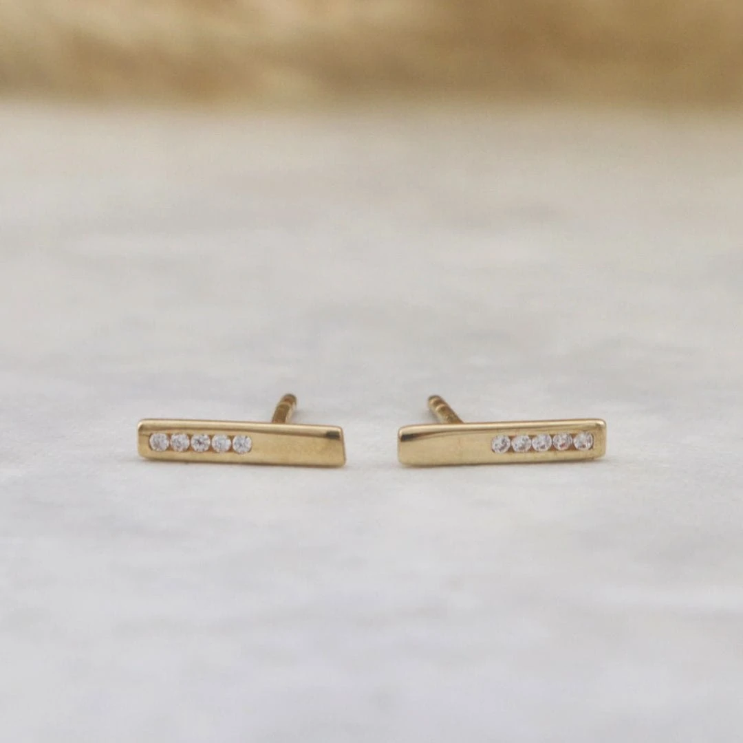 Boucles d’oreilles Barres en or 10K. La forme géométrique moderne et épurée ajoutera une touche de sophistication à votre look tout en restant minimaliste. Sublimez votre look avec élégance!