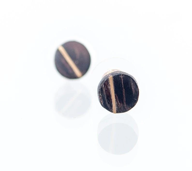 Découvrez cette paire de boucles d’oreilles en bois, pour femme et pour homme, fait avec amour au Québec, Canada, avec insertion d’une bande en argent sterling 925 ou en or jaune 14K.