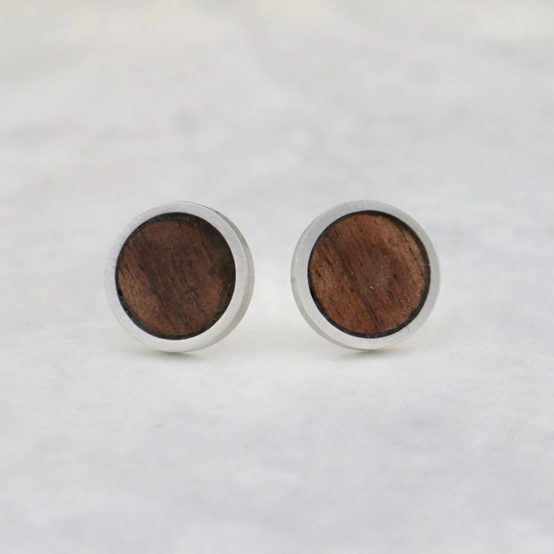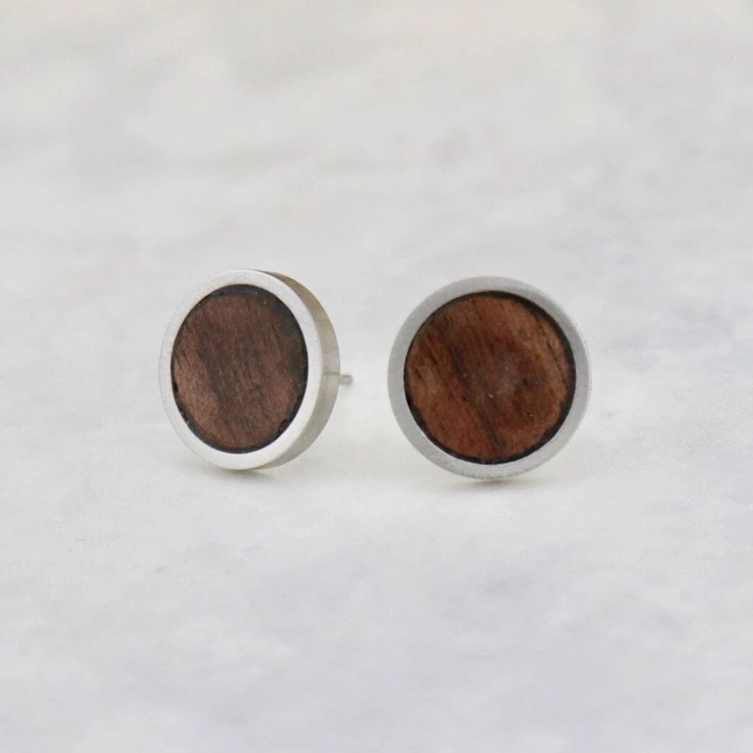 Boucles d’oreilles qui se distinguent par une élégante insertion en bois de noyer naturel, offrant un design intemporel qui combine harmonieusement la chaleur du bois et la modernité de l’acier inoxydable.