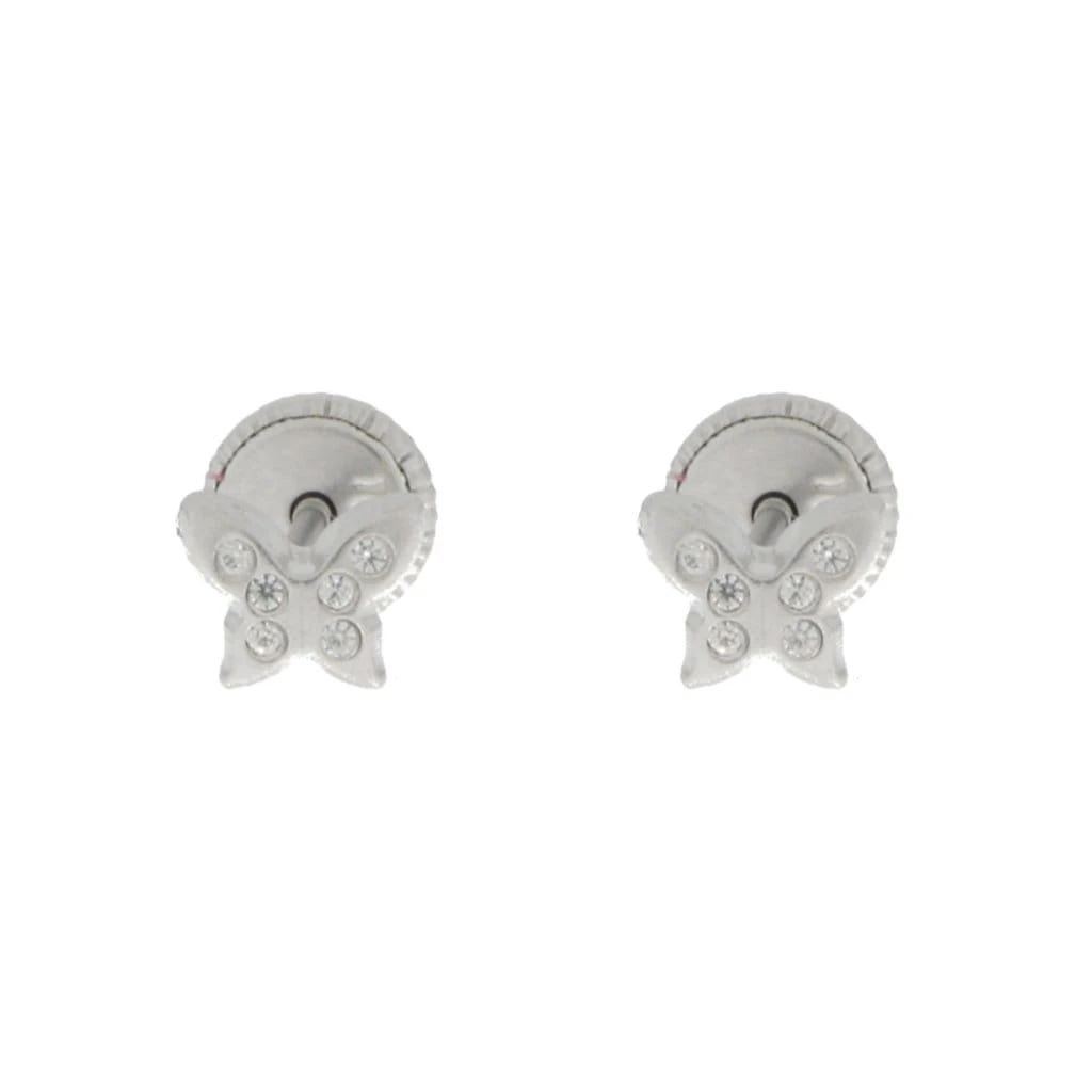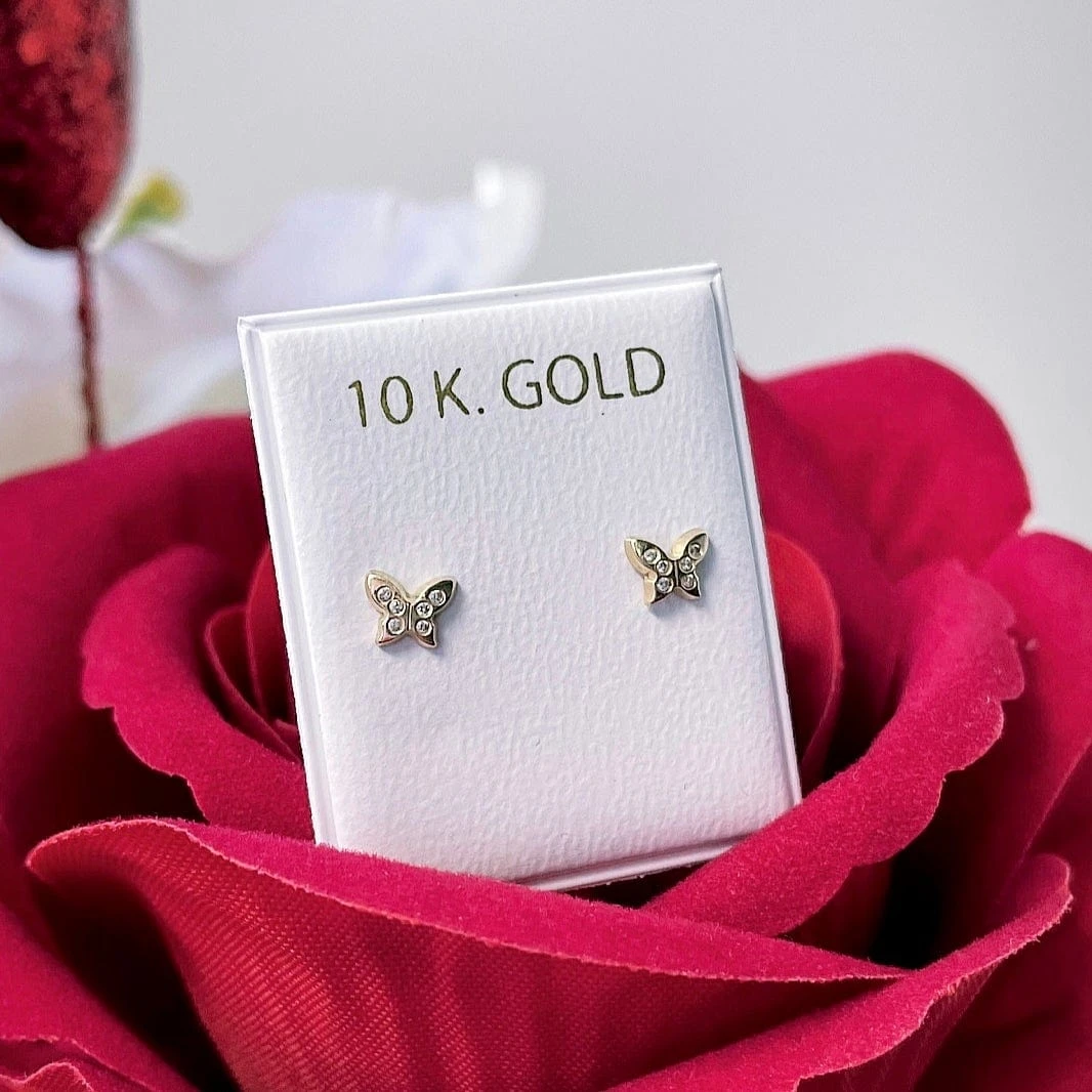 Boucles d’oreilles Papillons 6 x 5 mm, avec papillons/tiges vissées, en or jaune 10K ou or blanc 10K et zircons cubiques.