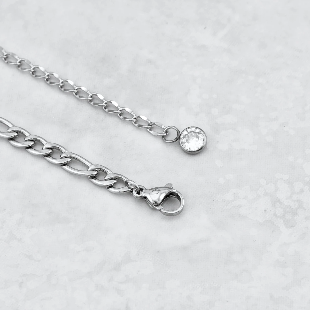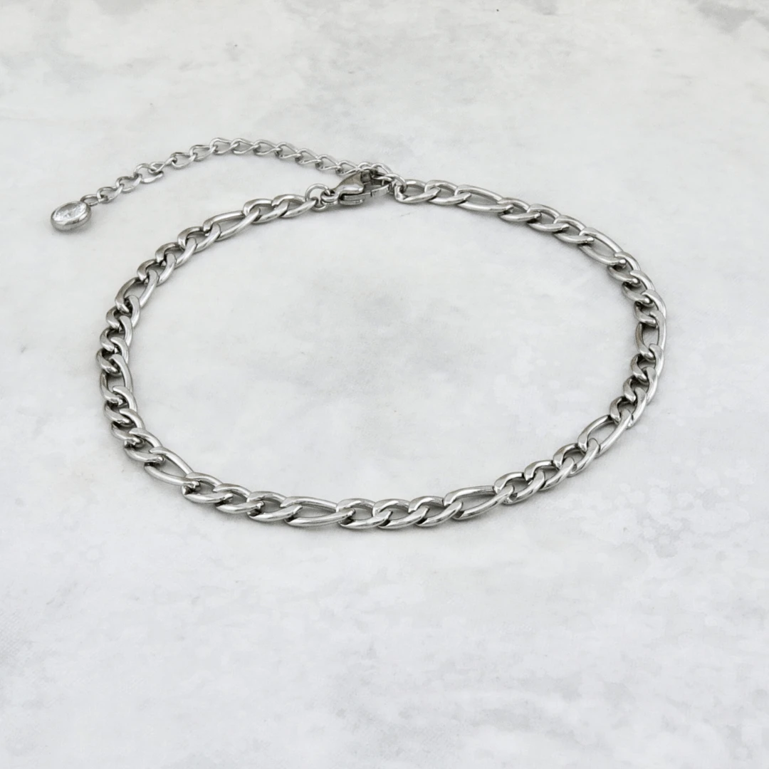 Avec sa maille Figaro de 4,5 mm, cette chaîne de cheville durable offre un style intemporel. Ajustable de 8,5 à 10 pouces, elle s’adapte parfaitement à votre cheville. Elle est également résistante à l’eau et à l’usure quotidienne.