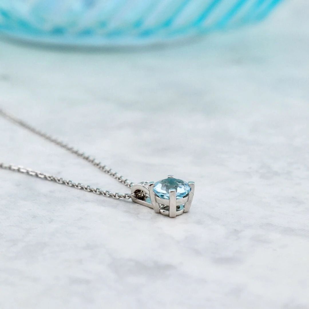 - Pierre de couleur : topaze bleue 6.25 mm (qualité AA)