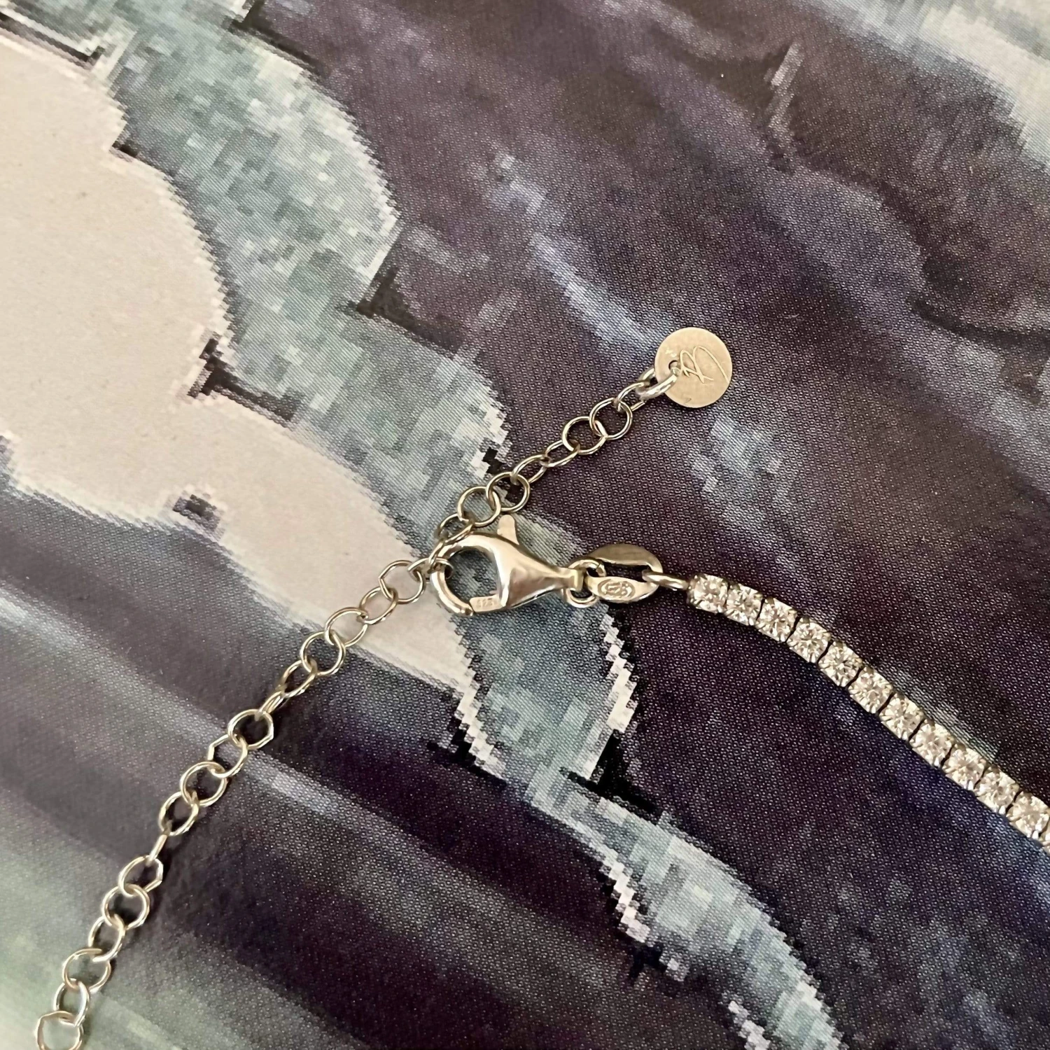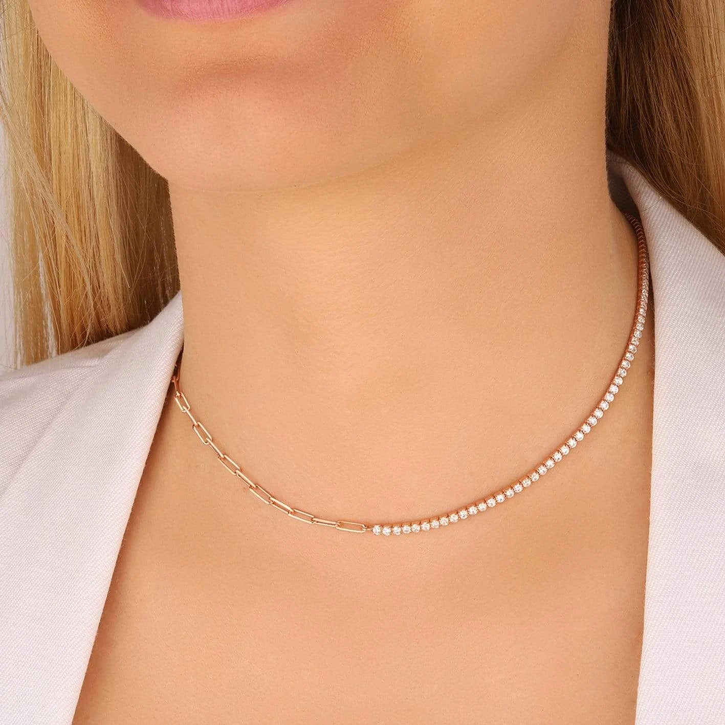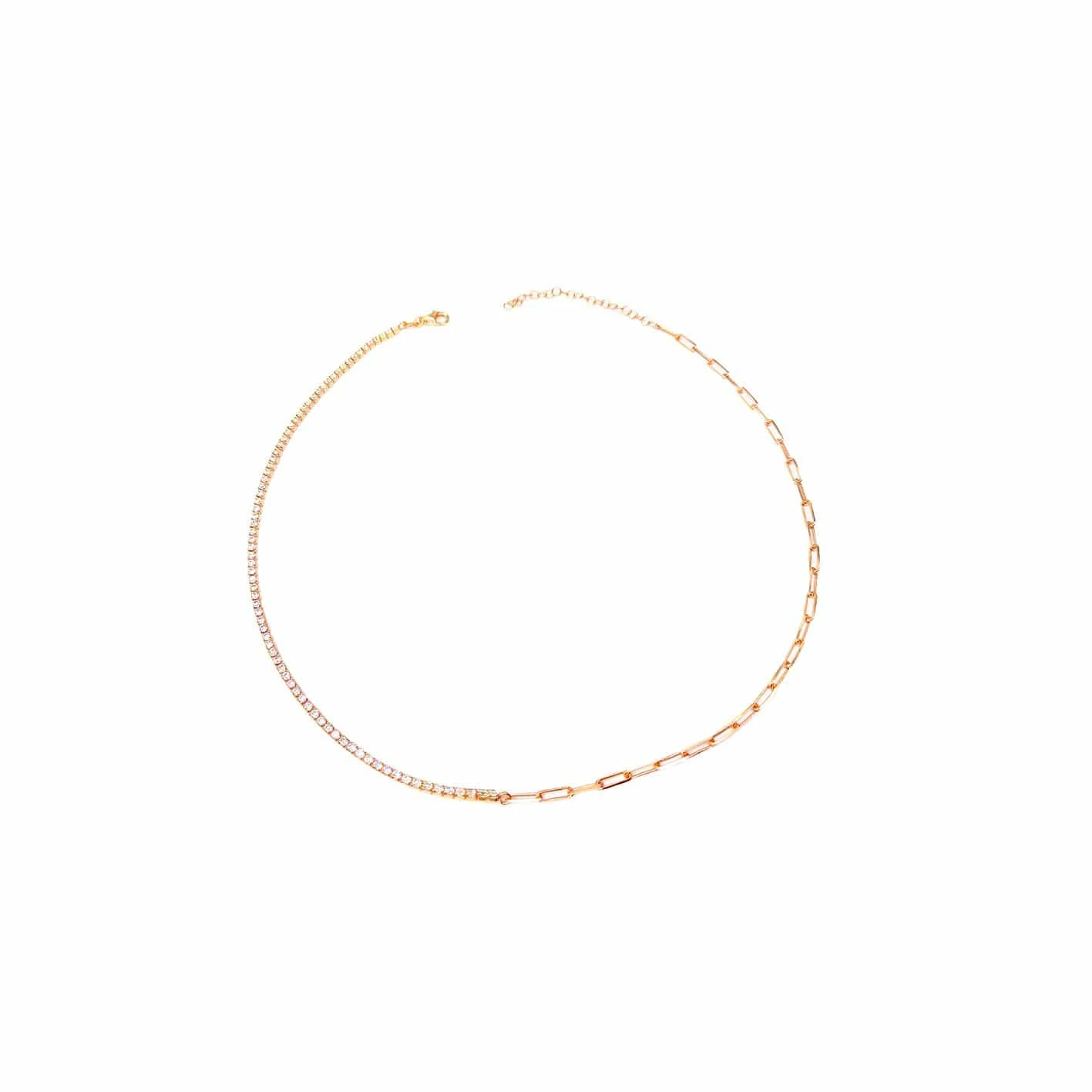 Collier court (choker) moitié chaîne, moitié tennis avec zircons cubiques.