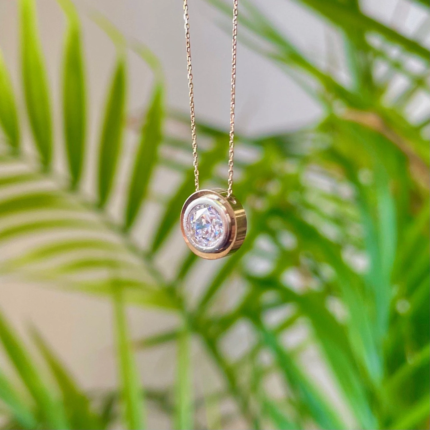 Élégant et brillant, ce collier 2 tons est un classique moderne. Fabriqué en or jaune 10k et or blanc 10K, il est composé d’un brillant Swarovski®. La pierre est montée en serti clos, et la pendant bouge librement sur la chaîne forçat ronde de 16,5 pouces.