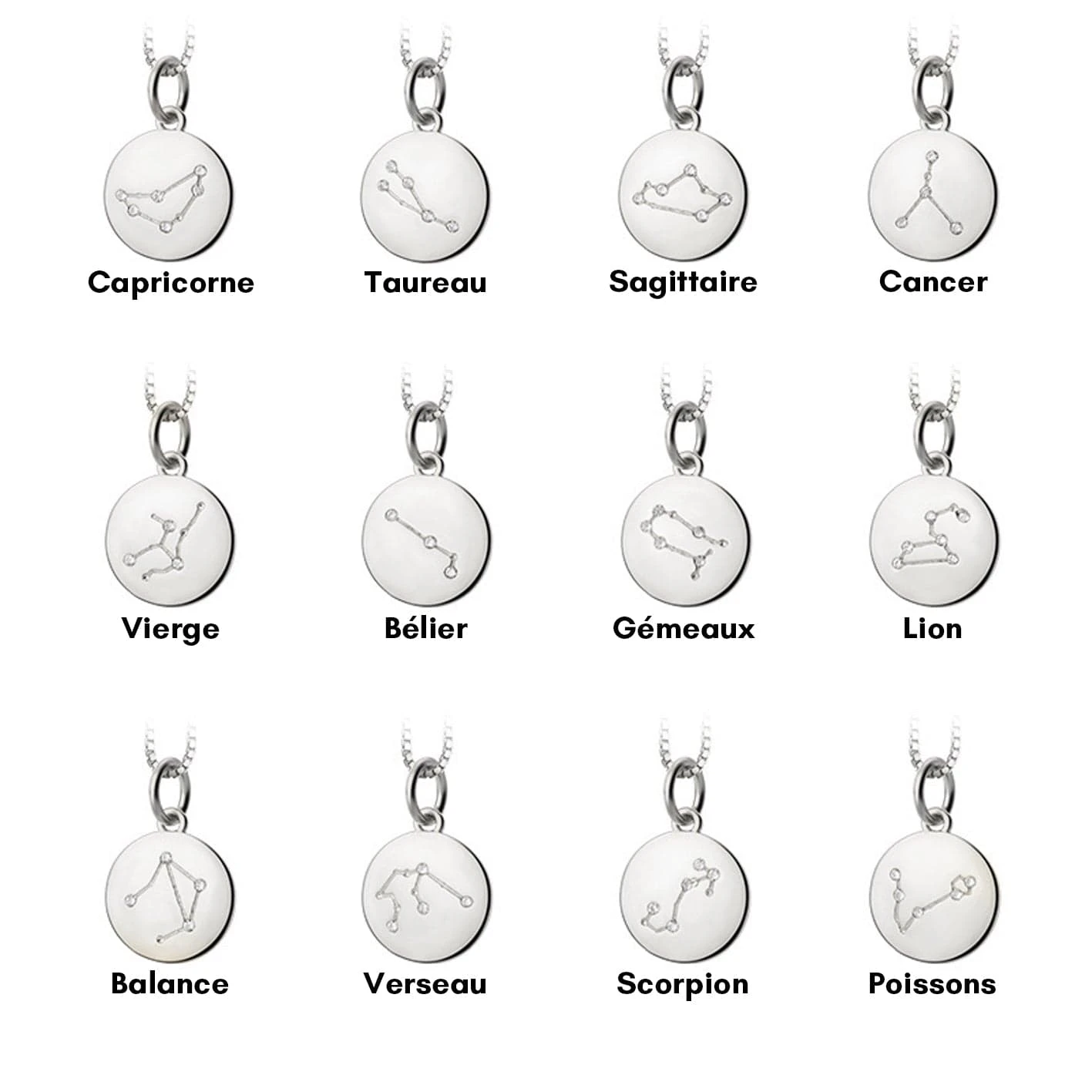 La série de colliers Constellation Zodiaque est inspirée des douze constellations présentes dans le zodiaque. Fabriqué en argent sterling 925, avec chaîne vénitienne, ce collier est simple et élégant.