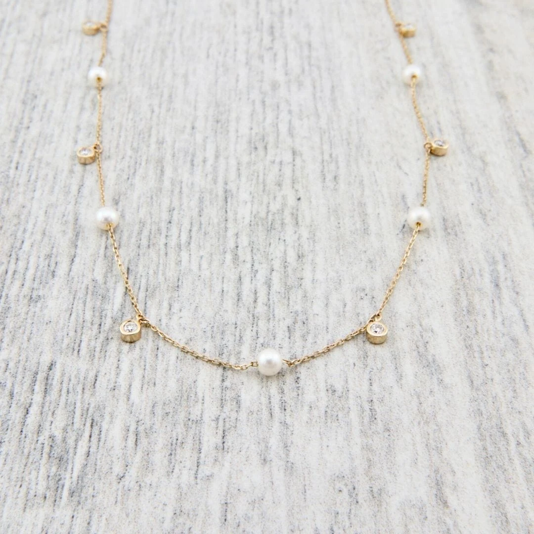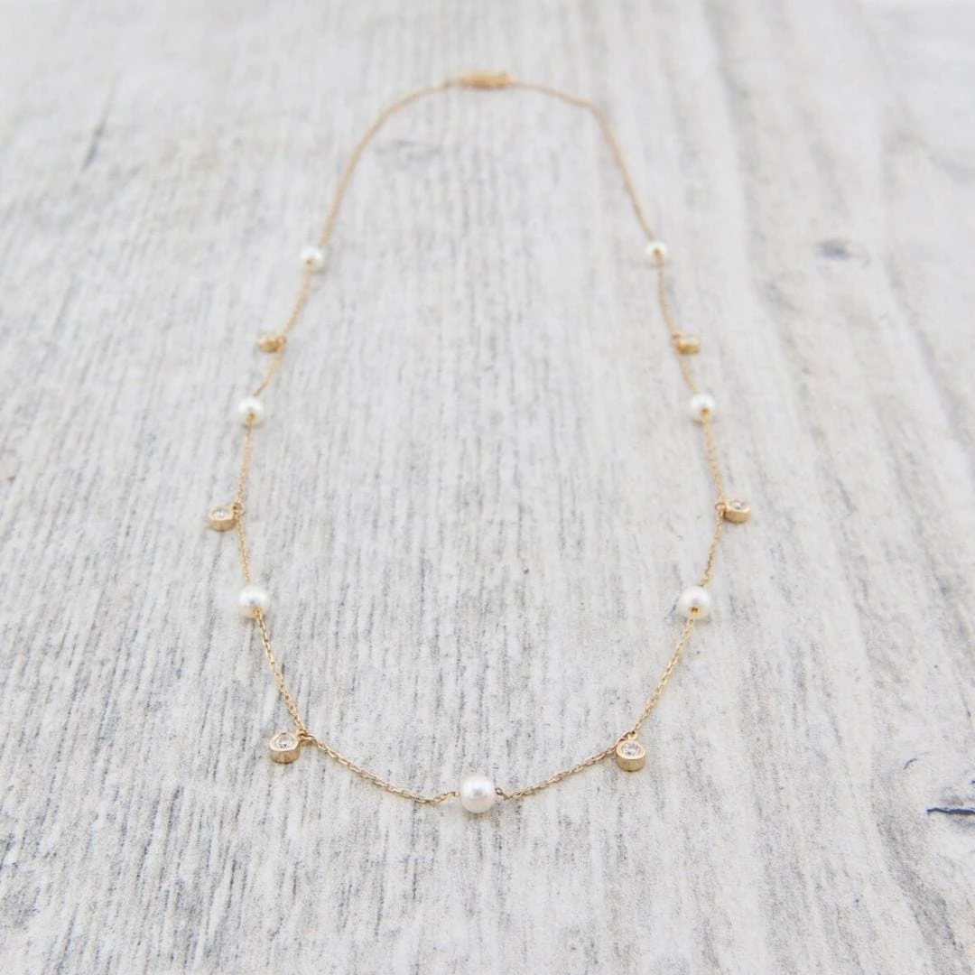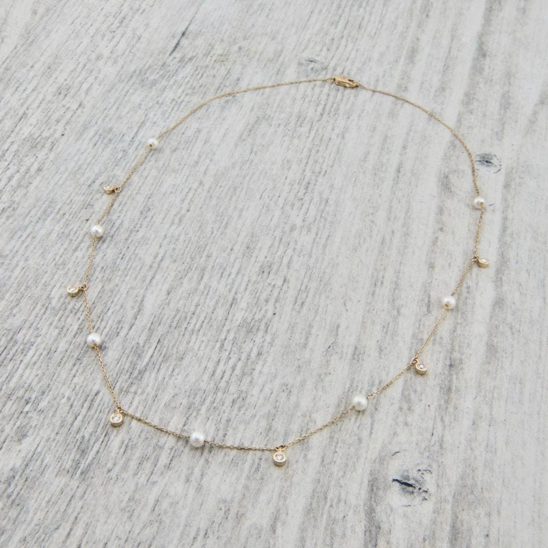 Donnez à votre style une touche élégante avec ce splendide collier en or 14K orné de diamants et de perles. Son design étincelant et ses teintes lumineuses sauront parfaire toutes vos tenues. Affirmez votre liberté et votre confiance en adoptant l’élégance de ce collier. Qu’il s’agisse d’un événement spécial ou d’une soirée raffinée, ce bijou sophistiqué sera l’accessoire idéal pour votre garde-robe.