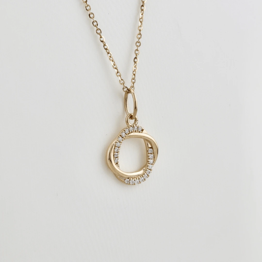 Collier Entrelacé avec moissanites serties sur or jaune 10K.