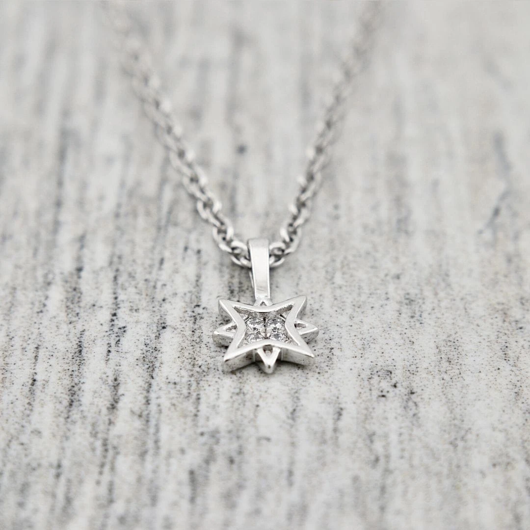 Distinguez-vous avec notre pendentif Étoile du Nord, une pièce aussi élégante que symbolique. Conçu avec soin en argent sterling 925, ce pendentif est une ode à l’étoile polaire, solidement sertie de zircons cubiques pour créer un bijou qui durera.