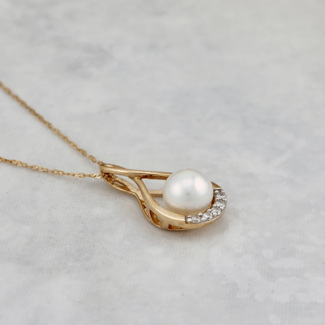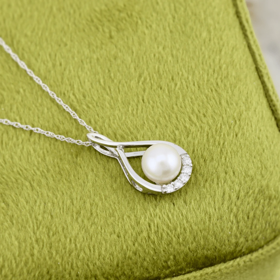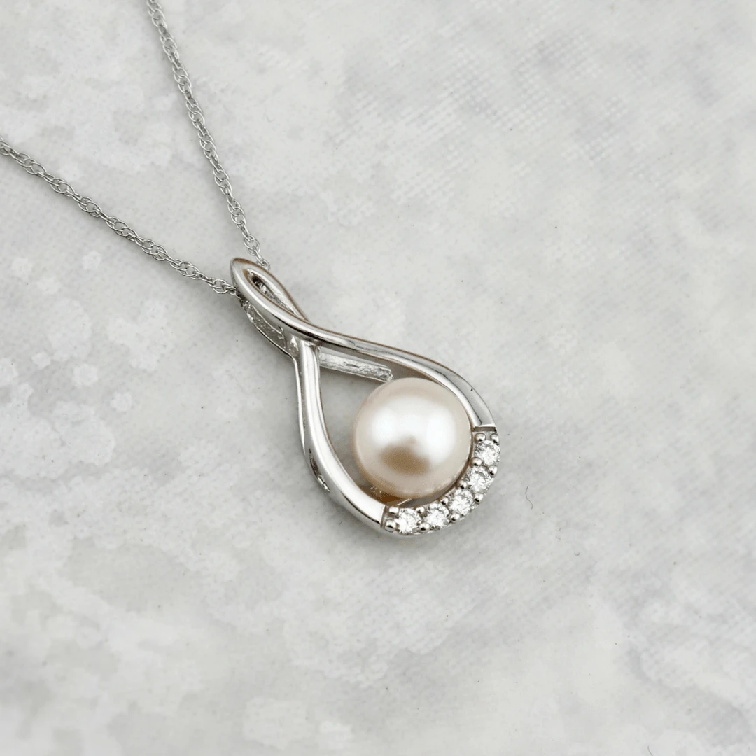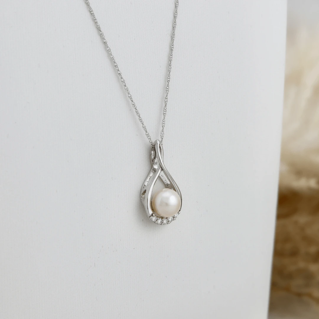 Le pendentif Orya incarne l’équilibre entre douceur et éclat. En son centre, une perle d’eau douce blanche de 7 mm repose délicatement dans une monture courbe en or 10K, évoquant une goutte en suspension. Cinq diamants naturels (totalisant 0,08 ct) accentuent la base du pendentif, ajoutant une touche de lumière à l’ensemble.