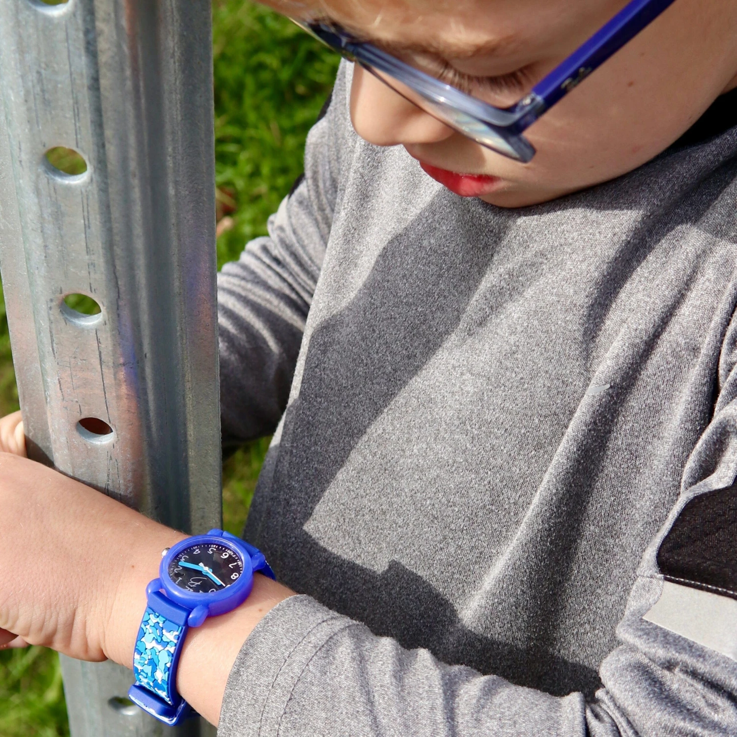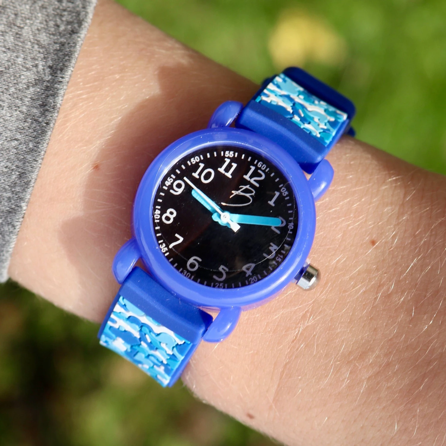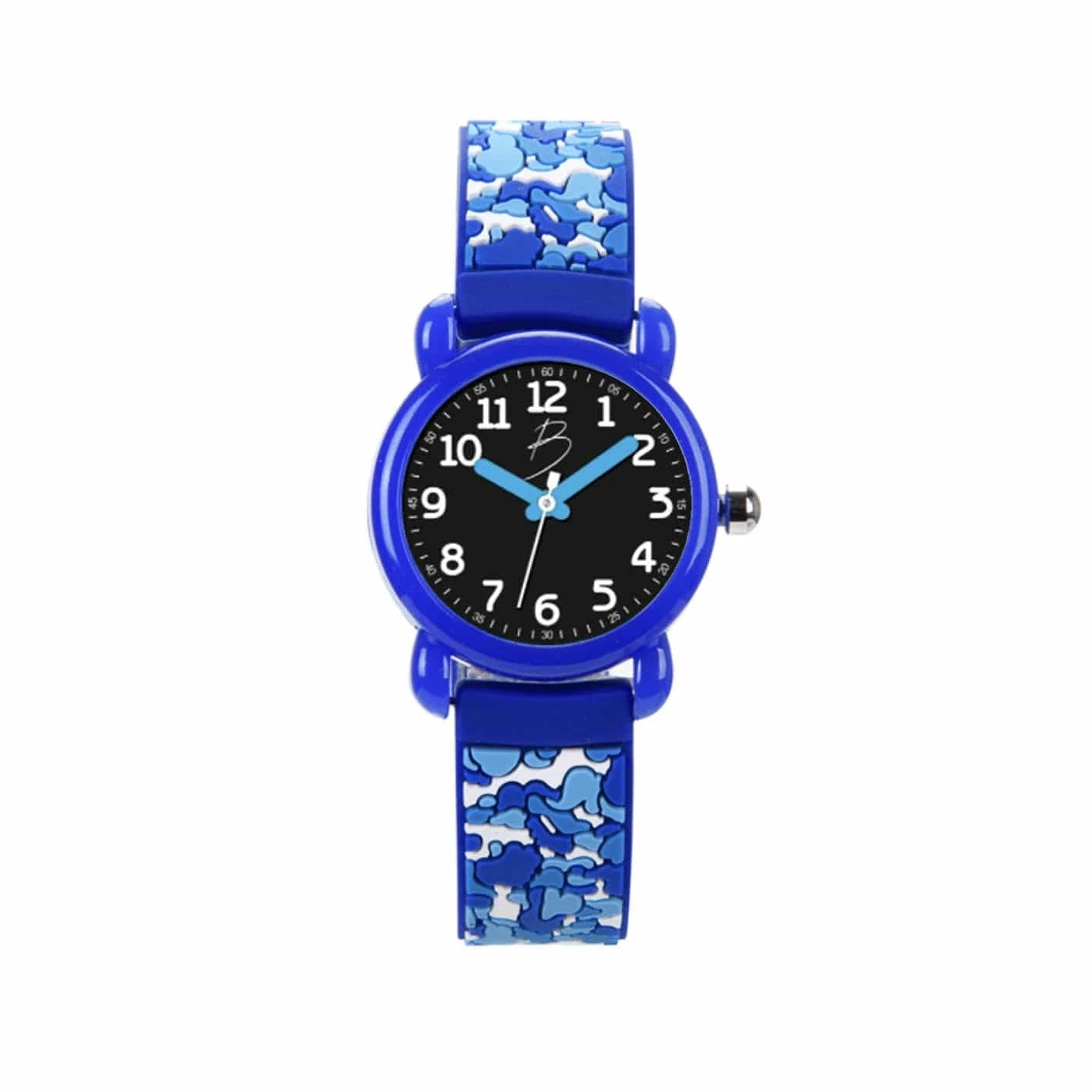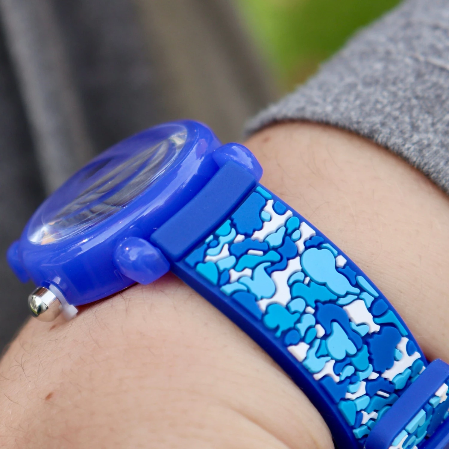 Offrez à votre enfant un accessoire amusant et stylé avec la montre Camouflage. Son bracelet en relief affiche un motif de camouflage bleu, parfait pour les jeunes explorateurs en herbe.