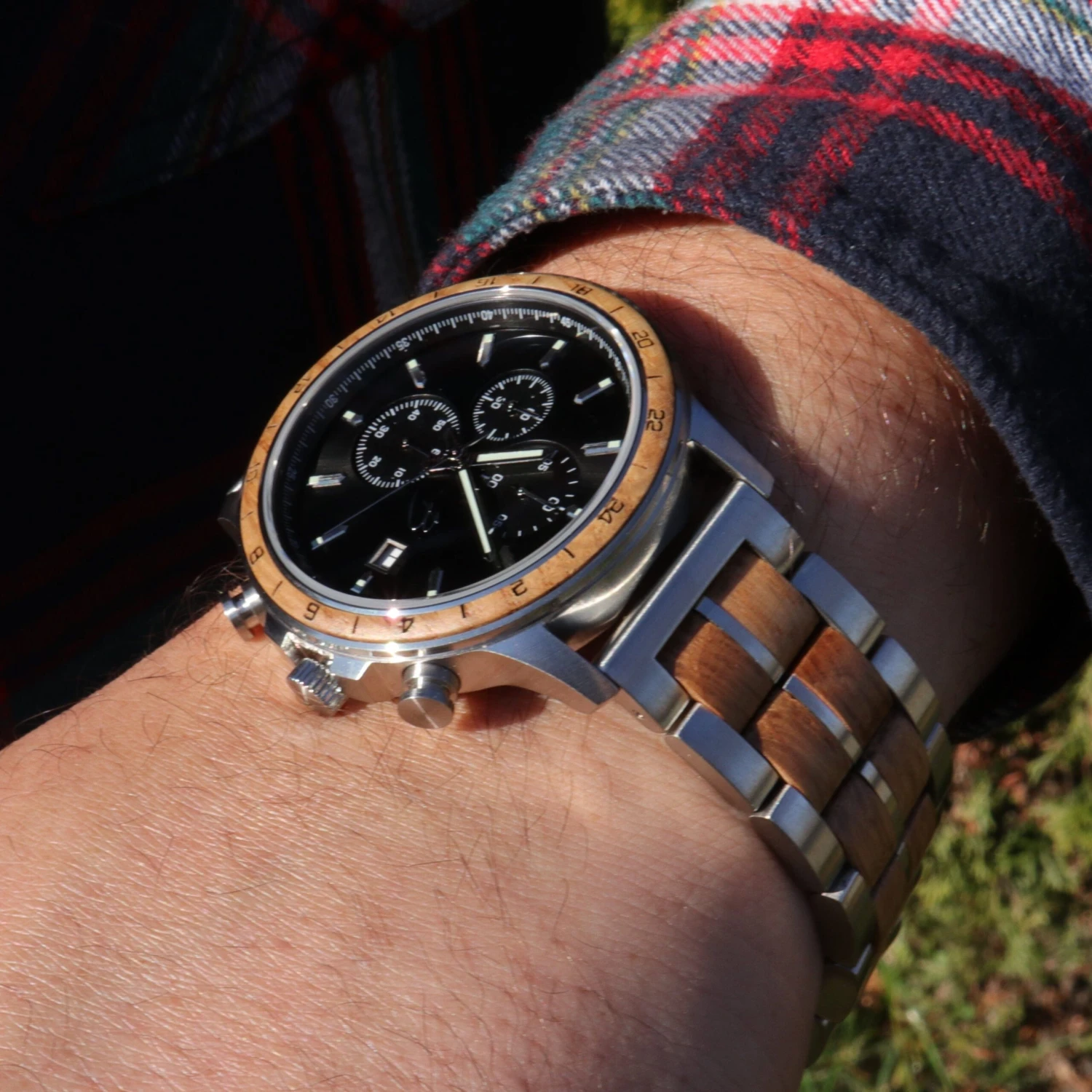 Pour les boitiers et bracelets de montre, nous avons déployé d’énormes efforts pour produire en utilisant des matériaux durables comme le bois naturel, issu de sources durables et l’acier inoxydable à finition matte. Cette finition permet une durabilité visuelle, puisque l’usure du temps y paraît beaucoup moins que lorsque lustré.