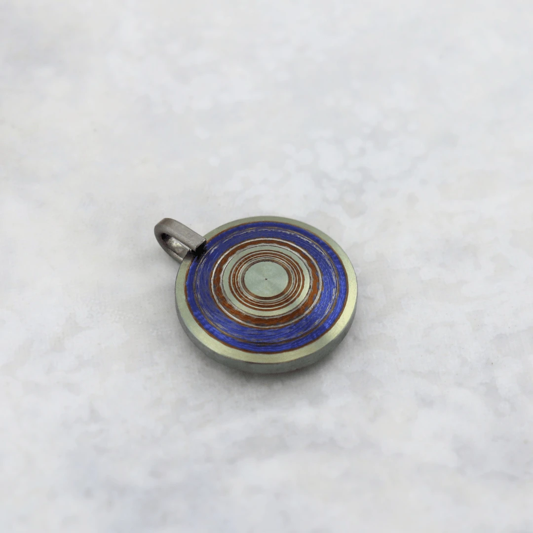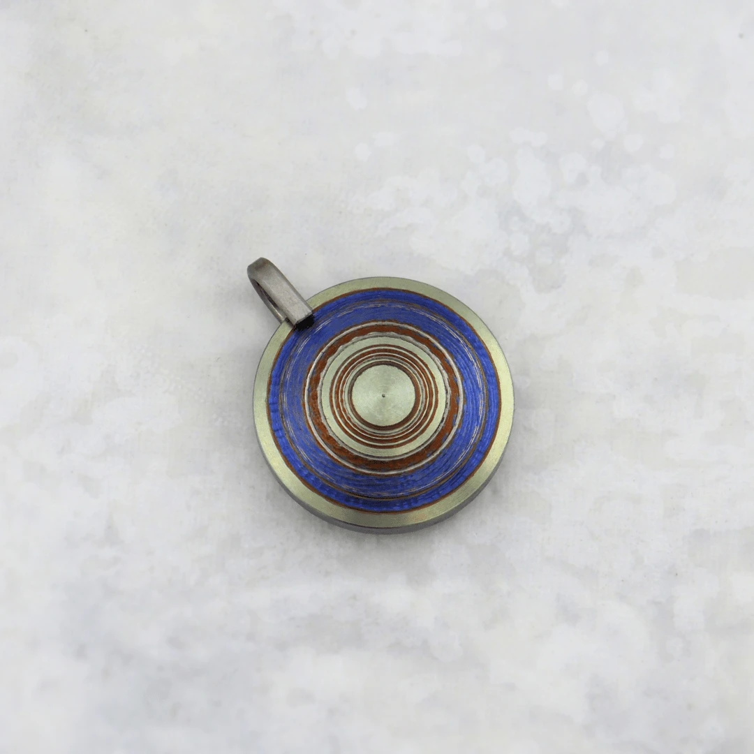 Cette pièce est anodisée pour révéler des couleurs uniques, impossibles à reproduire. Une chaîne en acier inoxydable finition noir est incluse.