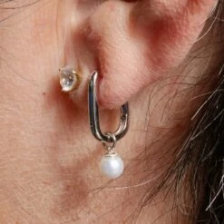 Boucles D’oreilles Huggies Perles Baroques En Argent Sterling