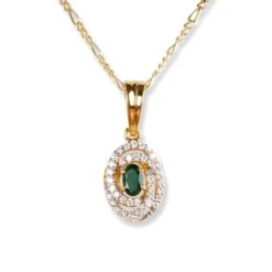 18ct Yellow Gold Diamond & Emerald Set (Pendant + Chain + Earrings) MCS6245/46