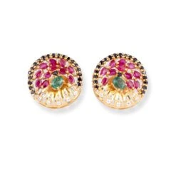 22ct Gold Multicolour Stone Pendant & Earrings Set – Circular Floral Design